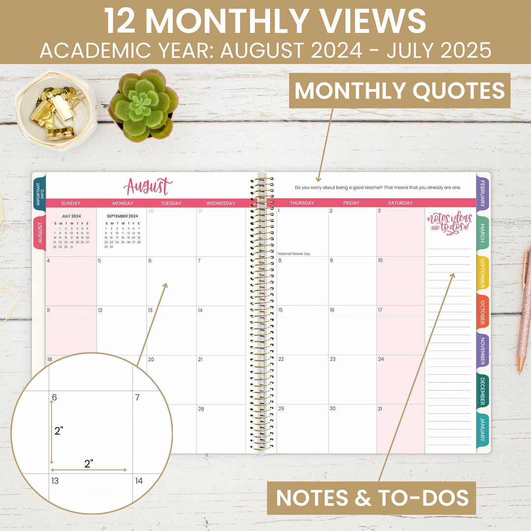 Teacher Lesson Planner 2024 2025: Monthly and Weekly Agenda